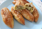 Начинка может быть любой (отварной картофель с жареным луком,яйцо с рисом,капуста и т.д)В данном варианте начинка такая: обжаренные с луком грибы смешанные с нарезанной отварной куриной грудкой).