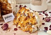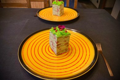 Пропитанный банановым кремом, нежный и воздушный пирог, имеет легкий шоколадный оттенок от какао, которым он припудрен.