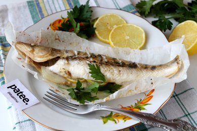 Судак с лимоном и тимьяном, запеченный в пергаменте