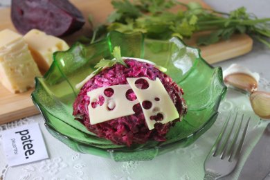 Салат из свёклы с сыром и майонезом - еще одна популярная закуска на любом столе. Чеснок добавляется по вкусу - или чуть заметно, или щедро, в зависимости от ваших предпочтений.