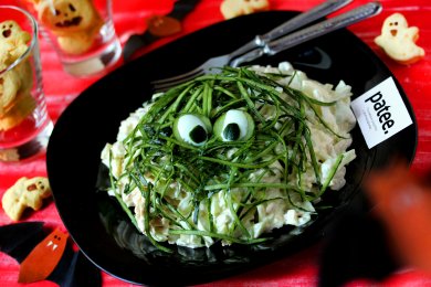 Второй рецепт из серии “Хэллоуин 2015”- салат с курицей, свежими огурцами, яичными белками и чесноком.  Продолжая тему рецептов на Хэллоуин, хочу предложить вам приготовить потрясающее печенье, точь-в-точь похожее на настоящие тыквы!  Простые доступные ингредиенты, оригинальная заправка, много зелени – и вкусный, сочный, хрустящий салат на скорую руку с фасолью готов!  Всем любителям французской кухни предлагаю попробовать бесподобный салат с названием, которое полностью описывает те эмоции, которые возникают при его дегустации.  Салат из куриной грудки и крабовых палочек с добавлением помидора и красного болгарского перца.