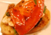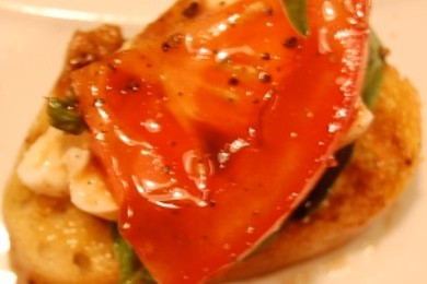Традиционный салат Каприз в новом исполнении - ну тосте из французского багета.