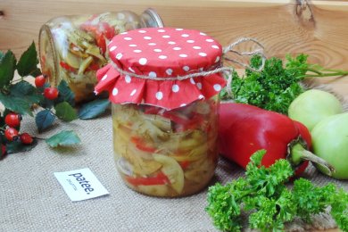 Используем сезон свежих овощей с грядки и готовим салат из зеленых помидоров на зиму. Рецепт очень простой, но салат получается отличный: яркий, аппетитный, сочный, вкусный и полезный.