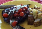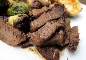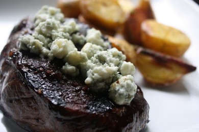 Попробуйте стейк из говядины, маринованный в сладкой глазури из меда, соевого соуса и бальзамического уксуса, обжаренный на гриле и посыпанный голубым сыром.