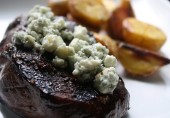 Кто же не любит хорошо прожаренное мясо? Этот сочный стейк прекрасно сочетается с жареными помидорами черри и изысканным голубым сыром.