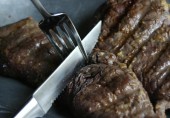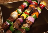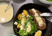 Говяжий стейк, маринованный в бульоне с чесноком и специями и приготовленный на гриле с овощами.