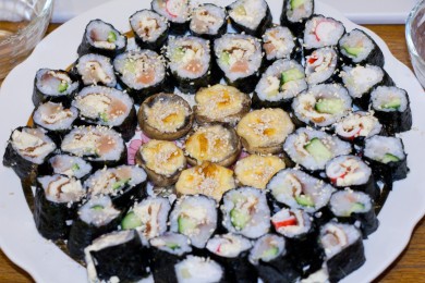 Готовим дома роллы с лососем, гренландской креветкой, крабовыми палочками и пекинской капустой. Проверенный вкусный рецепт суши в домашних условиях.