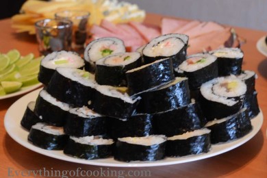Для сворачивания суши и роллов требуются определенные навыки и опыт. А суши-торт готовится гораздо проще и быстрее.