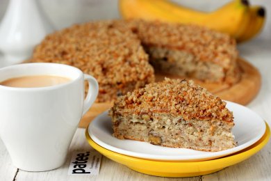 Очень вкусный банановый торт с грецкими орехами, медом и корицей - прекрасно подойдет для чаепития или утренней чашки кофе.