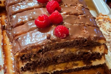 Что может быть лучше торта? Конечно же, это еще один торт! Поэтому вашему вниманию представлен нежный, вкусный и оригинальный торт со сливочным кремом, бананами и шоколадной стружкой.