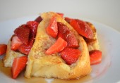 Французский хлеб с яйцом, молоком и корицей, обжаренный на сливочном масле. Подавайте со свежей клубникой, полив кленовым сиропом.