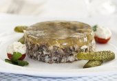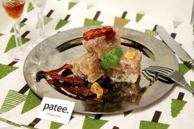 Мировая закуска! Альтернатива холодцу. Для остроты в фарш добавляется горчица, для аромата – чеснок.