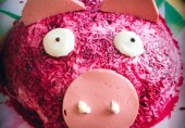 Холодец из говядины, моркови, клюквы и яичных белков, залитых бульоном с желатином.