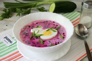 Этот свекольник относится к одной из разновидностей холодных супов. Готовится он на свекольном отваре с добавлением отварных яиц, сметаны и овощей.