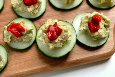 Закуска из огурцов с хумусом из авокадо - это очень легкое и, в то же время, очень вкусное и полезное блюдо!