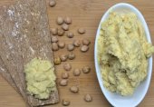 Хумус - полезное блюдо для вегетарианцев и просто следящих за здоровьем людей. Это вариант с лимонным соком, соевыми бобами и чесноком - очень пикантный.