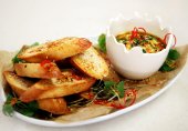 Хумус — закуска из нутового пюре, в состав которой обычно входят оливковое масло, чеснок, кунжут (сезам).