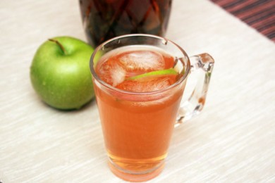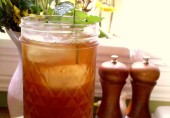 Охлажденный черный чай с листиками мяты, медом и лимонным соком.
