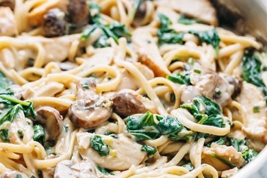 Проверенный рецепт фетучини с курицей и грибами в сливочном соусе — получится нежное и очень ароматное блюдо