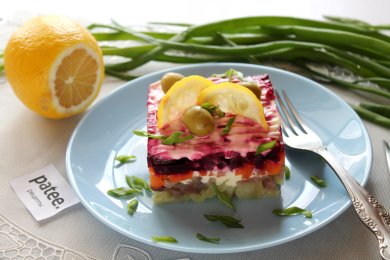 Готовим сытный, яркий и красивый слоёный салат шуба с сардиной по мотивам популярного праздничного салата “Сельдь под шубой”.
