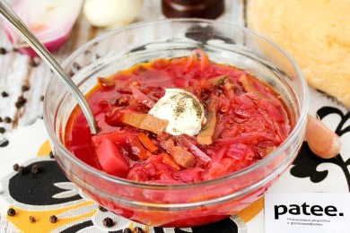 Привычный и всеми любимый борщ можно приготовить по-новому! Вместо мяса в данном случае используется свиной язык- именно на нём мы варим бульон, а затем нарезанный язык добавляем в сам борщ!