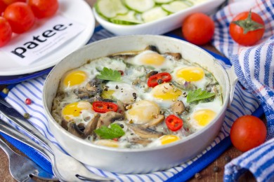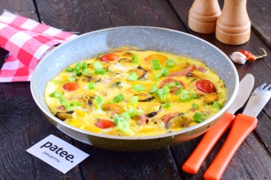 Яичница с грибами и помидорами