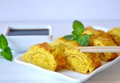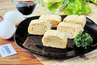 Предлагаю сегодня рецепт японского омлета, в виде свернутых тоненьких яичных блинчиков. Готовится он с добавлением соевого соуса, сахара, рисового вина или рисового уксуса.