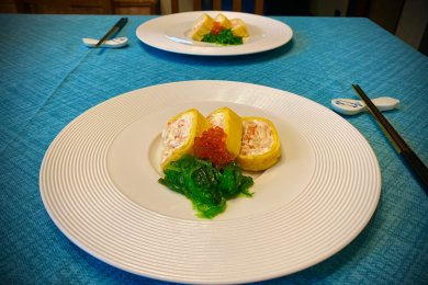 Когда на пороге утром возникает курьер с коробкой, в которой лежат клешни крабов, нет иного пути, чем сделать весёленький японский омлет Крабовый Тамагояки