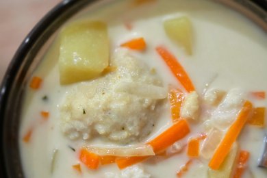 Очень нежный, чуть сладковатый супчик, картофель можно нарезать ещё мельче)Фарш можно взять и готовый