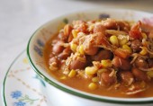 Суп с фасолью, кукурузой, курицей и овощами, приготовленный в медленноварке.