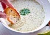 Суп-пюре из консервированной белой фасоли с чесноком и лаймом.