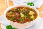 Красный борщ с фасолью хорош в любое время года, ведь к его аромату и волшебному вкусу просто невозможно остаться равнодушным.