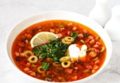Готовим оригинальную солянку с копчёностями, свежими помидорами и каперсами вместо солёных огурцов. Солянка получилась очень вкусной, с преобладающим оттенком копчёностей как во вкусе, так и в аромате.
