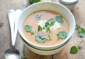 Простой и вкусный суп-пюре из сладкого картофеля с кокосовым молоком, овощным бульоном и специями.