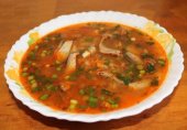 Харчо - национальный грузинский суп из говядины с рисом, грецких орехов и сушеных слив-ткемали. Сочетание мягкого, нежного вкуса говяжьего бульона и нейтрального вкуса риса с естественной кислотой ткемали, пряной зеленью заправки и слегка вяжущим ароматом орехов создает характерный вкус и запах супа-харчо.