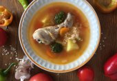 Суп “Гамбо” - блюдо американской кухни, в именно южного штата Луизиана. Густой, насыщенный и пряный суп с курицей, зеленым сладким перцем и сельдереем, всегда подается с рисом.