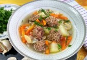 Рецепт его приготовления весьма прост, а результат — сытное, вкусное и полезное блюдо на обед. К супу с фрикадельками, лучше подавать сметану и свежую зелень.