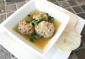 Испанский суп с тефтелями из фарша индейки с рисом, морковью, луком, чесноком и кинзой. Подавайте с лепешками.