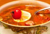 Солянка – это блюдо русской национальной кухни. Суп с кисло-остро-соленым вкусом, в состав которого входят такие ингредиенты как рассол, кислые огурцы, маслины, колбаса и овощи.