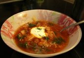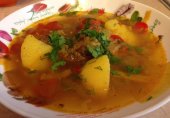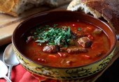 Грузинский густой острый суп с мясом по летнему рецепту шеф-повара телепроекта “Сделано со вкусом” Мурада Калаева и телеведущей Елены Усановой.