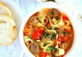 Это блюдо стоит особняком в категории первых блюд.По количеству ингредиентов превышает состав борща.Готовится быстро ,как суп.