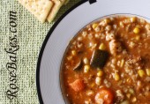 Попробуйте суп Минестроне с обжаренным говяжьим фаршем (или итальянской колбасой), овощами и мелкими макаронами.