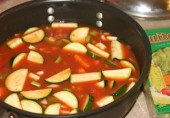 Сытный томатный суп с цуккини и сельдереем с добавлением тортеллини. По желанию можно использовать равиолли.