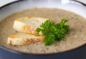 Очень нежный и вкусный суп. Мускатный орех придаёт супу неповторимые вкусовые нотки и усиливает вкус грибов.
