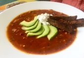 Острый мексиканский суп 🥣, очень насыщенный, вкусный. Для того, чтобы уменьшить остроту, добавляю авокадо и йогурт - мой фаворит среди нестандартных супов!