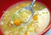 Вкусный и полезный суп из перловки с картофелем, морковью, сельдереем и пореем.