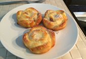 Выпекала в силиконовых формочках для кексов,т.к. тесто не очень поднимается,то можно до верху накладывать тесто,а то тонкие получатся.