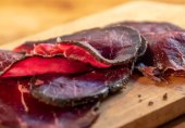 Нежная, и полная вкуса, бастурма из говядины, хороша и как закуска к пиву, и как основное блюдо.
