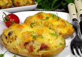 Описание рецепта — Картофельные лодочки с беконом и сыром запеченные в духовке: