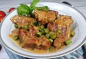 Описание рецепта — Мясо в сливочном соусе с зелёным горошком: